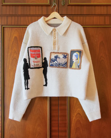 A Combination Of Knit, Embroidery, Woven And Applique Techniques Bring An Art Gallery To Life On This Rugby Sweater